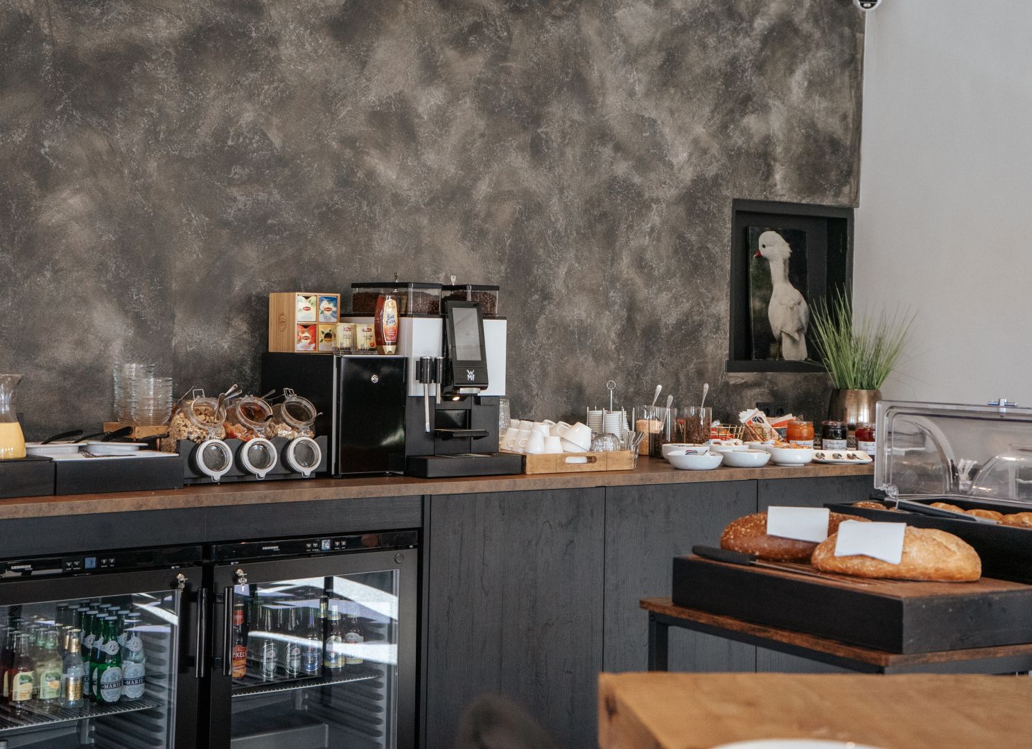 Elke ochtend serveren wij in onze lounge een uitgebreid ontbijt. Versgebakken broden, luxe warme broodjes en diverse zoetigheden: Er is voor iedereen wel iets. Daarnaast heeft u de keuze uit diverse vleeswaren, verschillende kaassoorten, zuivelproducten en vruchtensappen. Ook zoet beleg, superfoods, cornflakes, granola’s, vers fruit en diverse bereidingen van ei zullen niet ontbreken. Dit onder het genot van vers kopje koffie, cappuccino of thee.